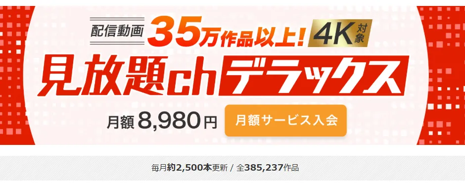 | 見放題ch | 月額3,980円で約20万本以上見放題 |