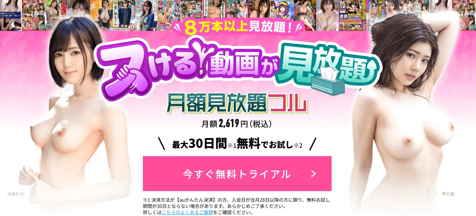 2種類のお試し期間があり、無修正AVの入門サイトとして強く推奨します。