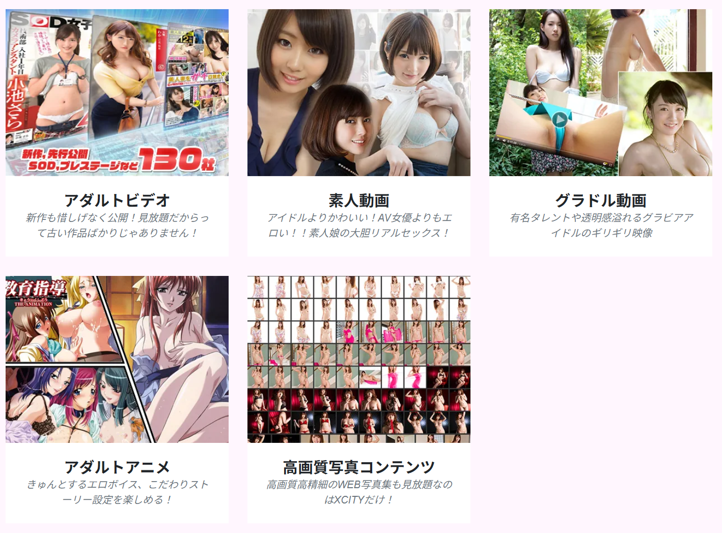 | XCITY(エックスシティ) | 総合系 | 3,155円 | 約10万本 | プレステージ系も見れるがイマイチ | |